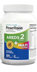 PreserVision by Bausch + Lomb is a vision support supplement formulated with lutein, zeaxanthin, zinc, copper, and the vitamins C and E. It delivers this blend of ingredients in one softgel per day. Some may want to note that the product contains 5 calories per serving. Additionally, the product cannot be purchased directly from the brand which means you would need to find a third-party retailer to purchase this product.