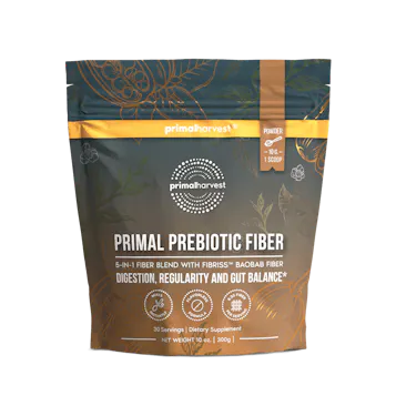 Primal Prebiotic Fiber by Primal Harvest is a premium, easy-to-mix powdered fiber supplement to help support smoother digestion and regularity, provide weight loss support, and balance out the gut microbiome.* Featuring fiber from four different sources, Primal Prebiotic Fiber is formulated with organic baobab fiber, organic acacia gum fiber, green banana fiber, and apple fiber. What truly makes this fiber supplement stand out is the organic 3-in-1 Fibriss® baobab fiber - an African superfood that delivers soluble fiber, insoluble fiber, and polyphenols. It combines this with the addition of green tea polyphenols, potent antioxidants with many health benefits. Polyphenols may help to boost prebiotic function, making this our favorite from this list.*