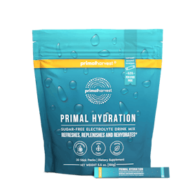 Primal Hydration by Primal Harvest is a refreshing electrolyte powder drink mix featuring a powerful blend of essential minerals, coconut water, and vitamins. Expertly formulated to support proper hydration, it contains the essential minerals sodium, potassium, calcium, and magnesium as well as vitamins C, B3, B5, B6. and B12. The formula contains powdered coconut water - nature’s own source of electrolytes for an additional hydration boost. This premium hydration formula is also suitable for a wide range of diets and lifestyles.*