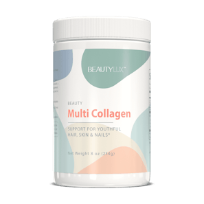 BeautyLux Beauty Multi Collagen is an unflavored multi-collagen peptide powder, formulated from bovine, marine, chicken, and eggshell membrane collagen. This premium powder features collagen types I, II, III, V, and X which are sustainably sourced from cage-free chickens, grass-fed cows, and kosher, North Atlantic fish.*