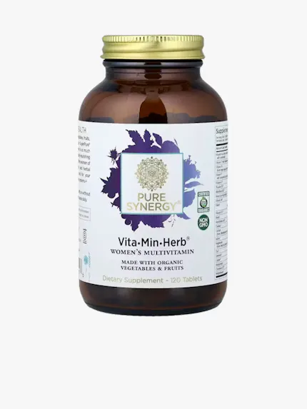 Vita•Min•Herb by Pure Synergy features a range of herbal extracts and fermented nutrients, but it lacks iron and GABA, which some users may consider essential for women’s wellness. It might appeal to those seeking a plant-forward option, though some users may find the price a little high.