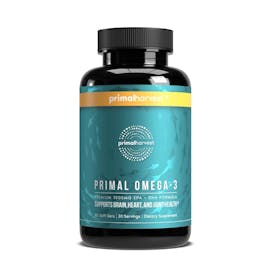 Primal Omega-3 by Primal Harvest is a premium fish oil supplement that features 750 mg marine lipid oil, 600 mg of EPA, 400 mg of DHA, and 4 mg of vitamin E. This omega-3 formula comes in easy-to-take softgels with no fishy aftertaste. The convenient serving size of two softgels per day makes this omega-3 fish oil supplement easy to add to any wellness routine.