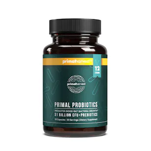 Primal Probiotics are formulated with 31 billion CUFs from 12 dynamic probiotic strains, including L. acidophilus, L. rhamnosus, L. casei, B. longum, B. bifidum, and Bacillus coagulans. It combines these with Red Raspberry Seed and FOS (Fructo-Oligosaccaride) prebiotics, helping the good bacteria inside your gut to thrive.