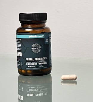 Primal Probiotics are formulated with 31 billion CUFs from 12 dynamic probiotic strains, including L. acidophilus, L. rhamnosus, L. casei, B. longum, B. bifidum, and Bacillus coagulans. It combines these with Red Raspberry Seed and FOS (Fructo-Oligosaccaride) prebiotics that help good gut bacteria to thrive.