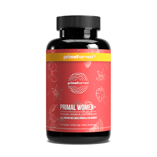 Primal Women+ by Primal Harvest is a comprehensive supplement designed to support women during their menopausal transition. The formula features essential nutrients including vitamins C, D3, E, A, and K, along with all 8 B-vitamins to support energy and mood. It also contains key minerals like calcium, zinc, selenium, iodine, chromium, and magnesium that become increasingly important during menopause. The addition of GABA helps support relaxation and sleep quality, while the unique blend of Xanthogreen® lutein, astaxanthin from organic algae extract, and lycopene provides antioxidant properties to support overall wellness during this transition.